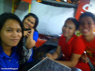 Alternate seat and stand when one of us was sleepy she will seat down in the chair and the other one will stand up. our first stop was in Alabang, there where also passengers by that area who board the bus, and when the bus was stopping we're sweating it was hot and there were many passengers.There were person sitting in the Isle, and we are one of them. hahahaha poor girls.... ^_^